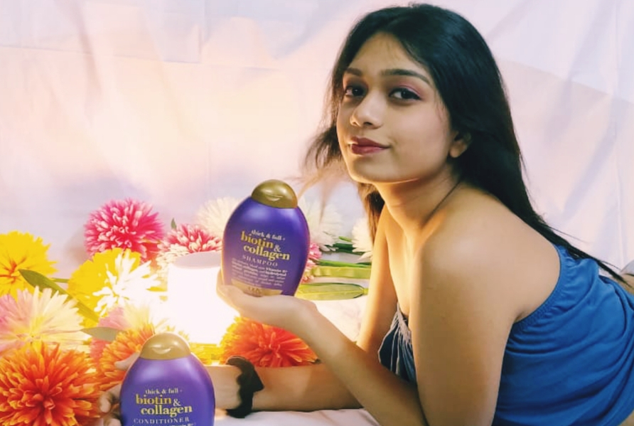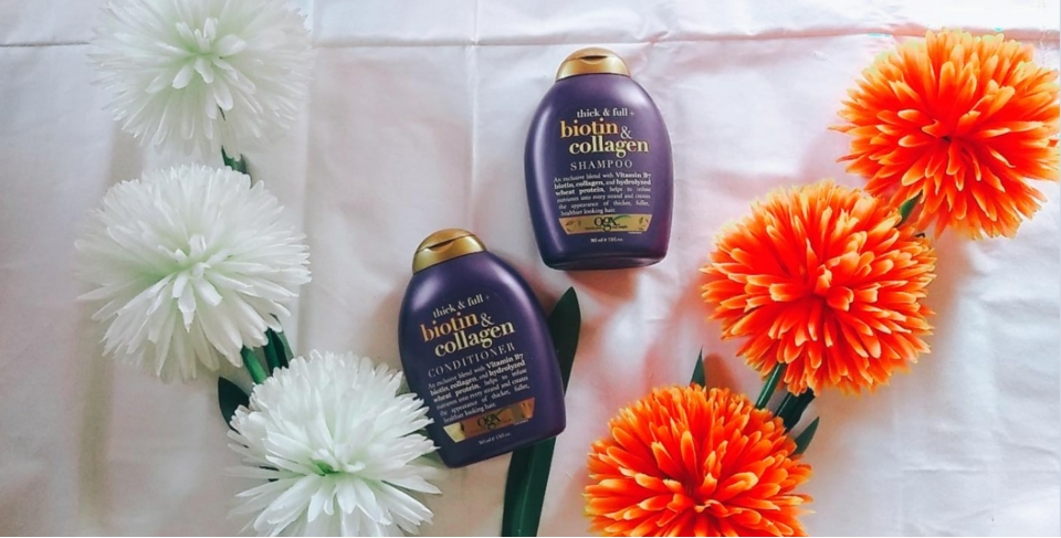 Today with me I have the thick and full biotin and collagen shampoo and conditioner from Ogxbeautyindia.